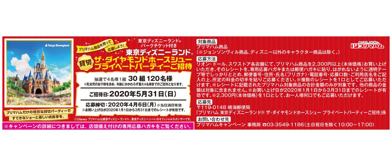 「プリマハム 東京ディズニーランド ザ・ダイヤモンドホースシュー プライベートパーティーご招待」キャンペーン開催中!