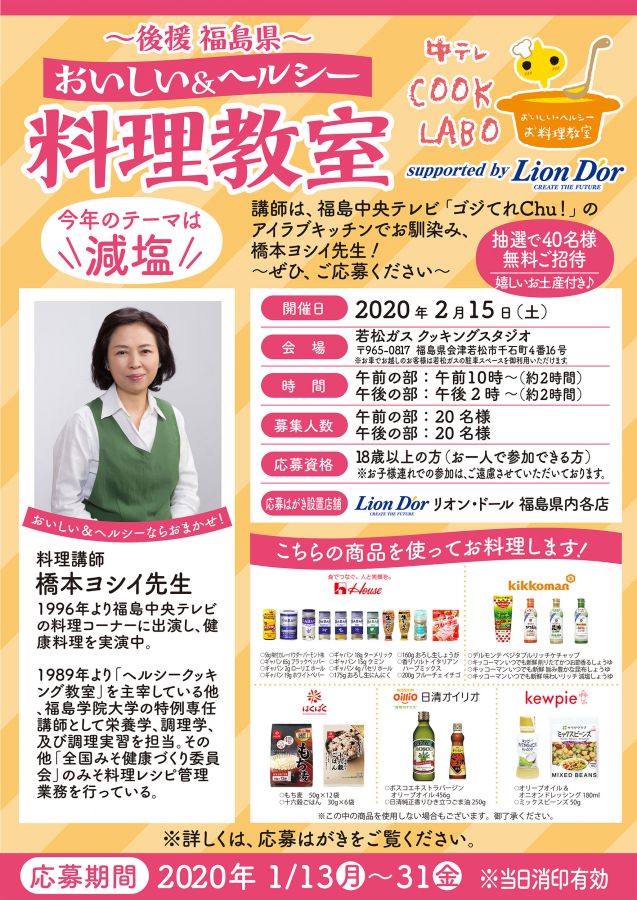 「中テレCOOK LABO おいしい&ヘルシー料理教室」開催