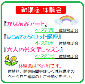 カルチャーセンターでは、それぞれの分野で活躍してらっしゃる講師の方々を募集しております。詳しくはリオン・ドールカルチャーセンターへお問い合わせください。