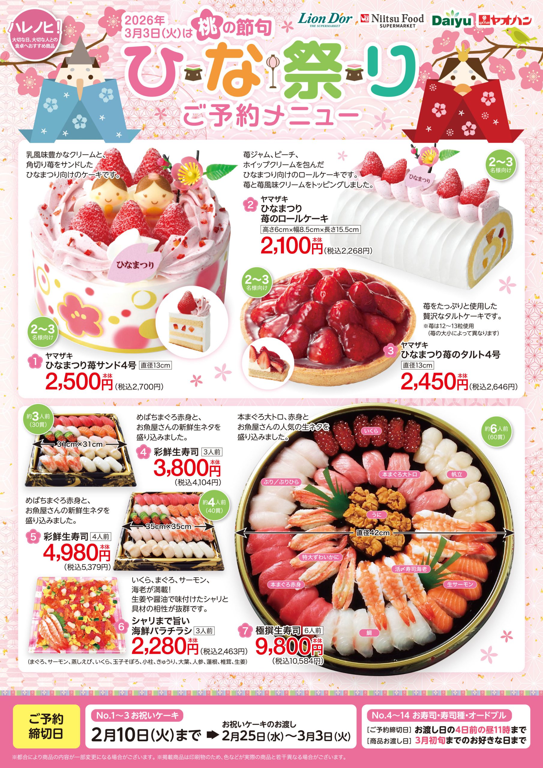 2月10日(火)まで→お祝いケーキのお渡し2月25日(水)~3月3日(火)